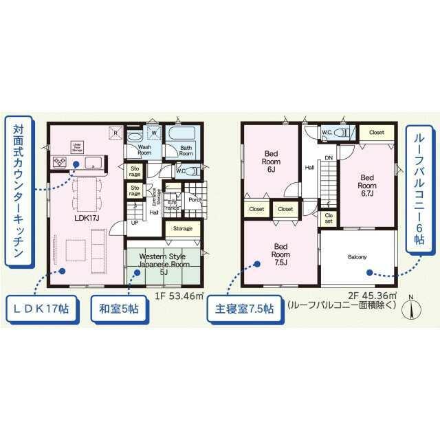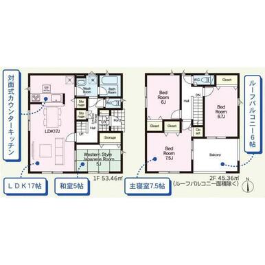 号棟番号:2号棟 ーフバルコニー約9.72平米有 土地面積に路地状部分約53平米含 カースペース3台(車種による) |