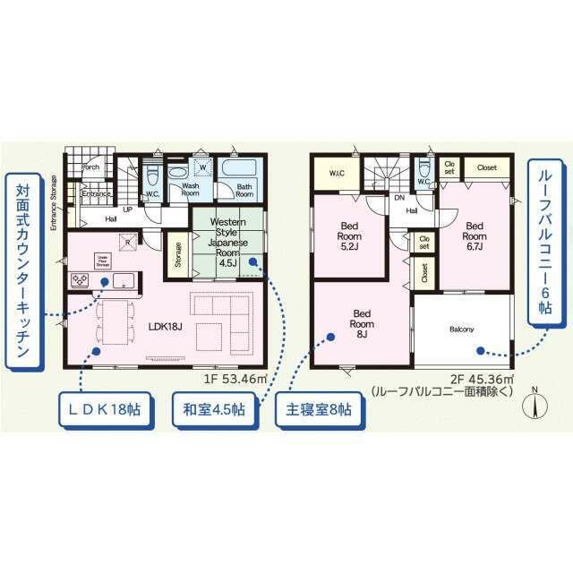 号棟番号:1号棟 積に別途ルーフバルコニー約9.72平米有 土地面積に排水用地部分約19.09平米含 カースペース3台(車種による) |